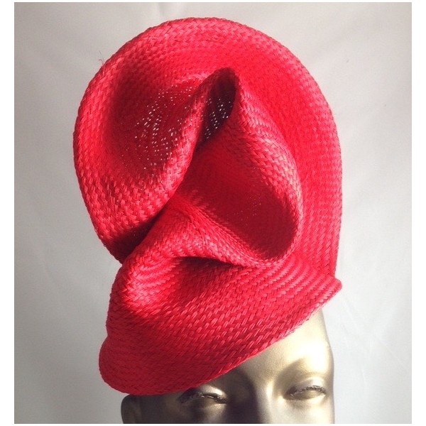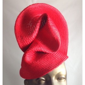 This (smaller) headpiece is made from draped and sculpted woven buntal straw in a range of colours, mounted on a narrow tulle wrapped alice band.