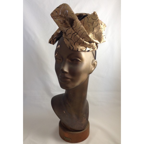 Patterned Leather Pouf Hat Gold